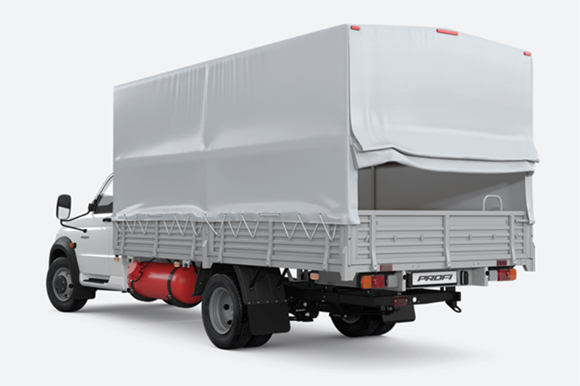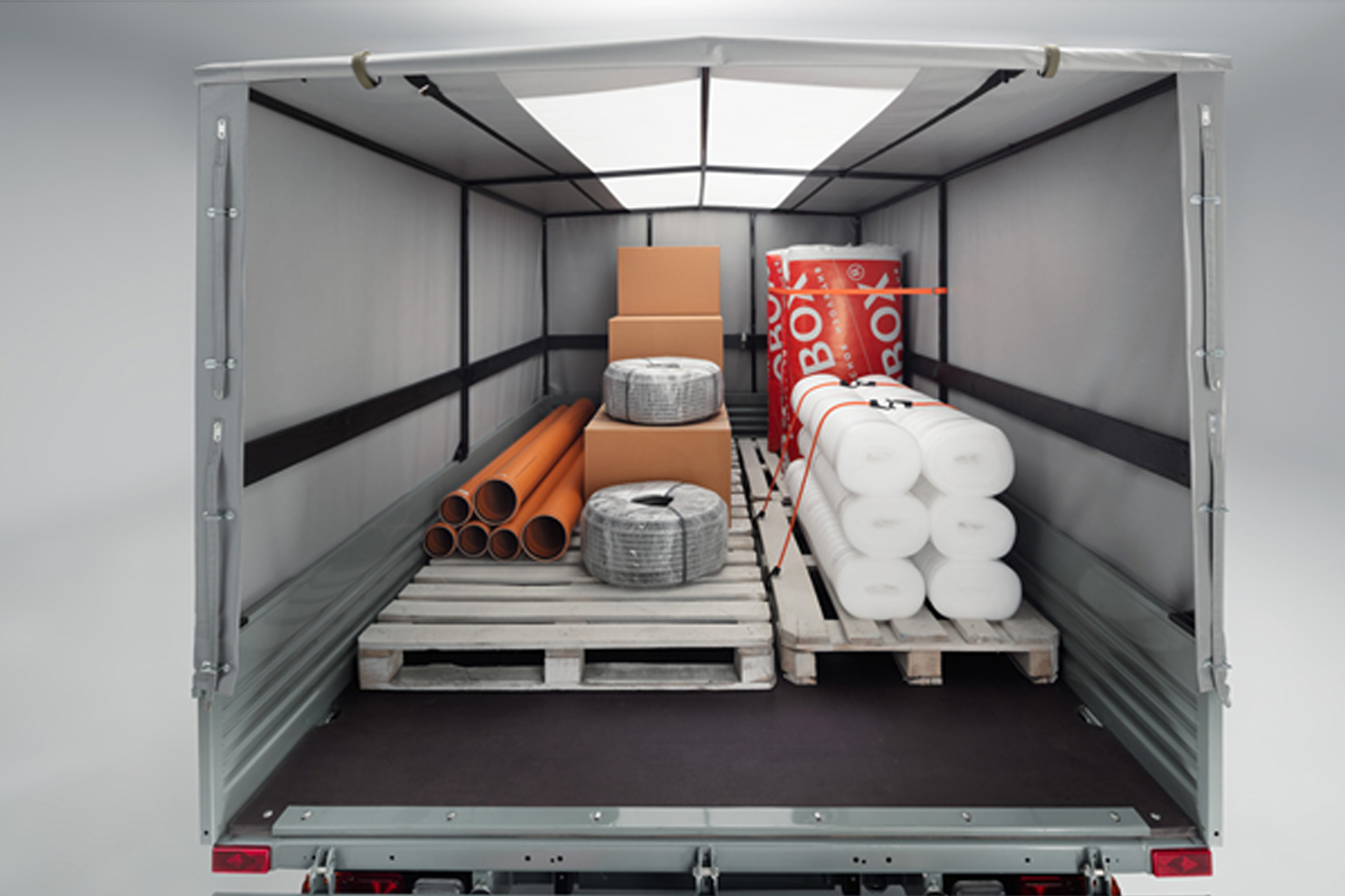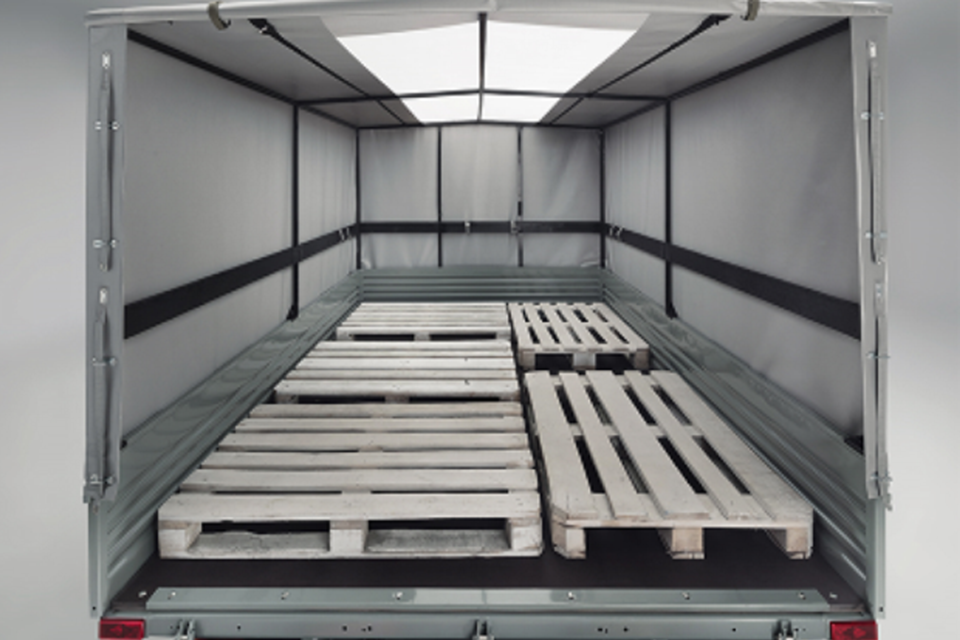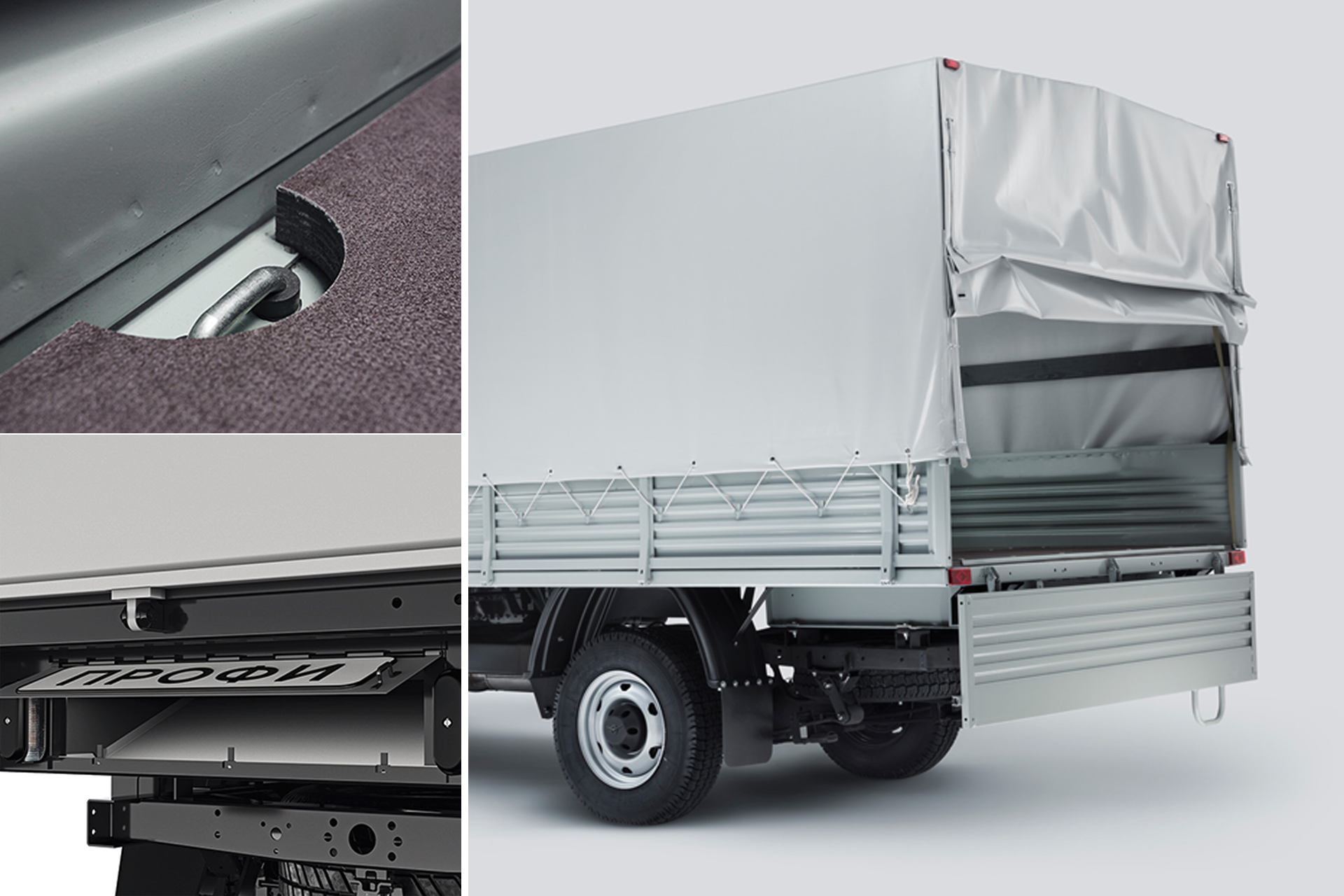 Боковые борта открываются раздельно, а увеличенная высота тента позволяет осуществлять погрузку в полный рост.
