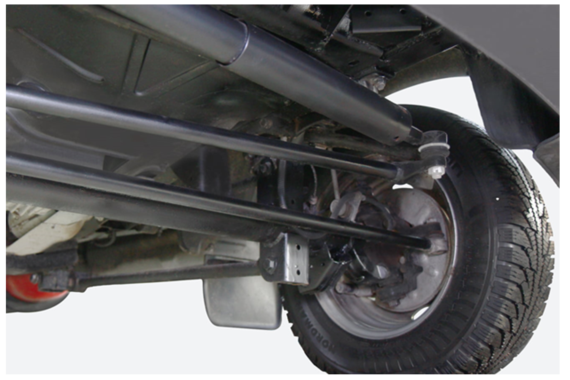 Подвеска на 4-х продольных рычагах позволяет минимизировать изменения кастора от ходов подвески. Увеличена передняя колея, более точная обратная связь и комфортное руление.